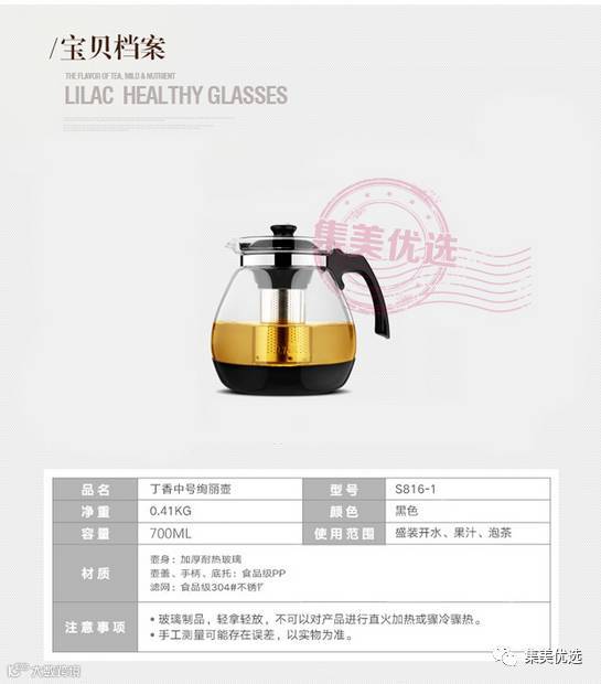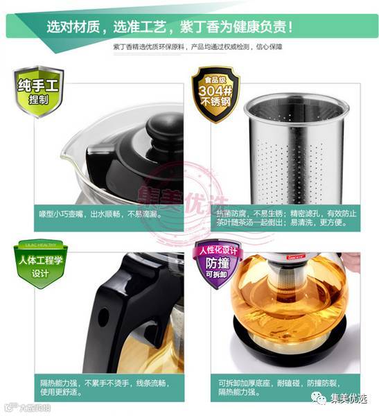 紫丁香耐热玻璃茶壶不锈钢过滤茶具套装花草茶壶茶杯泡茶壶冲茶器 700ml