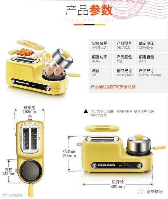 Bear/小熊 多士炉家用 迷你烤面包机 多功能自动早餐机
