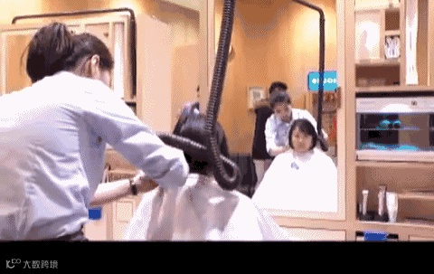 长发女生修完头发还能顺便吹个造型。