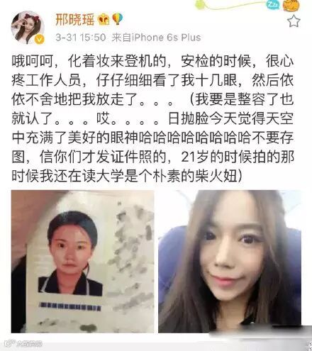 过安检的时候肯定逃不过被来回检查的命运,毕竟长得差别也忒大了点吧!