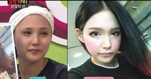 一个很火的韩国网红上了卸妆节目后,可以看得出底子并不差,只是化完妆后的自拍太好看所以有点仙女变凡人的感觉…