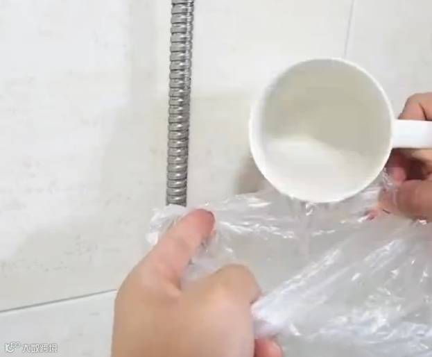 将食醋倒入塑料袋中