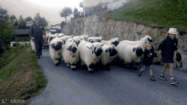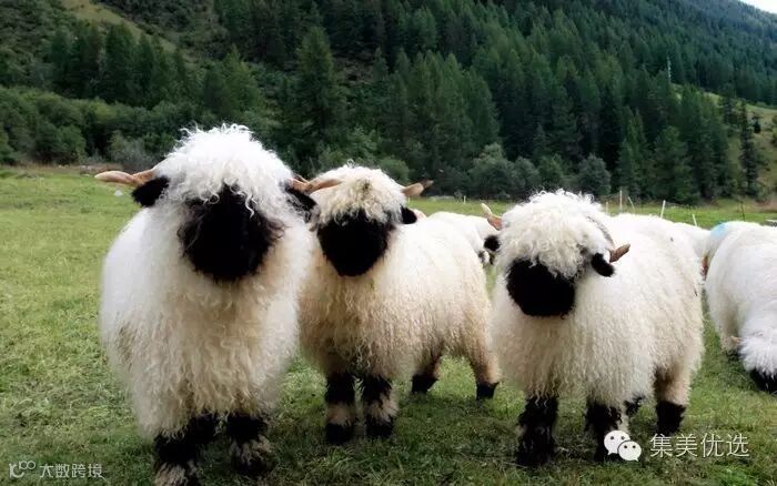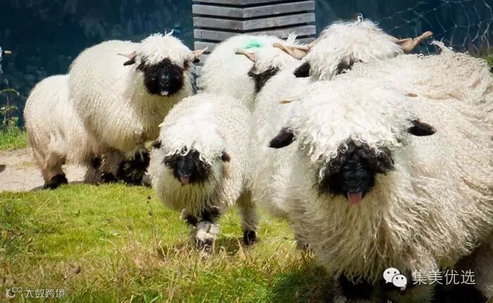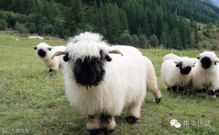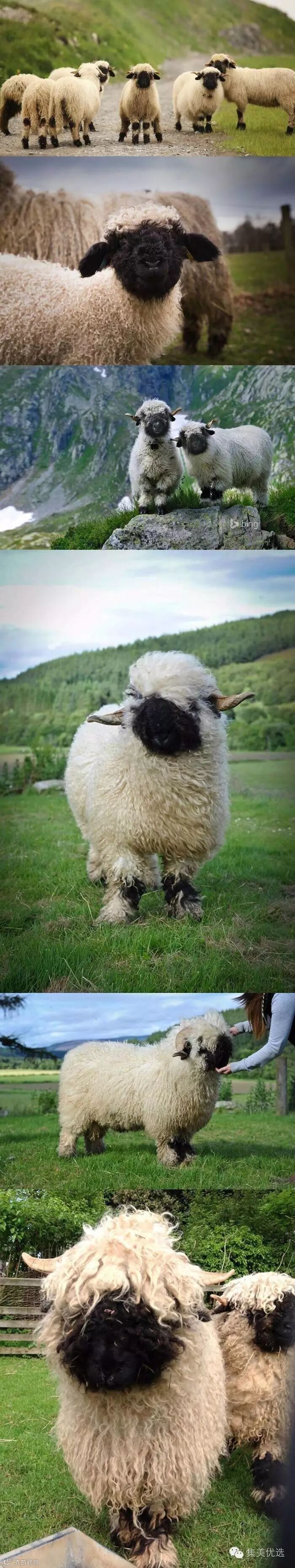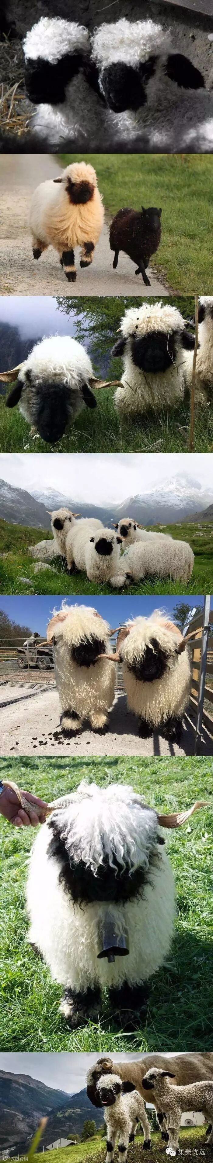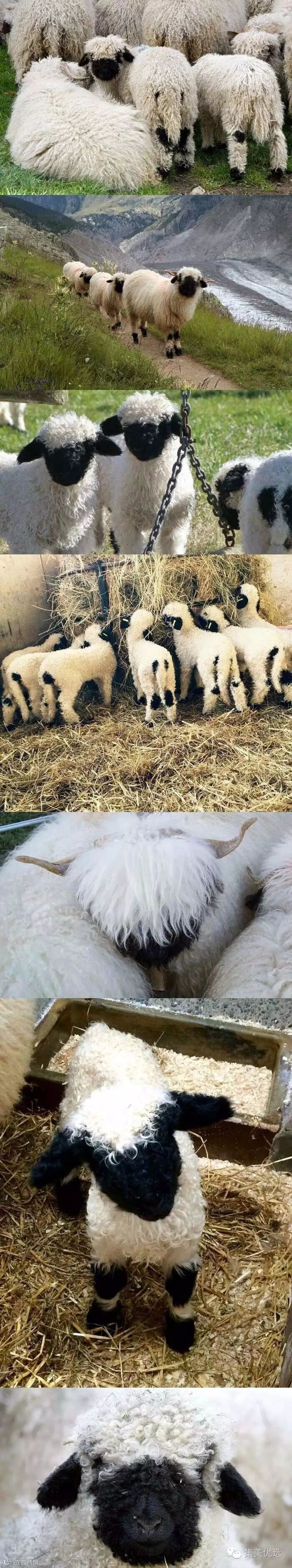 “黑脸羊”-瓦莱黑鼻羊(Valaise Blacknose),原产自瑞士瓦莱州,它们的最大特点就是长着黑脸、黑耳朵、黑膝盖和黑腿。