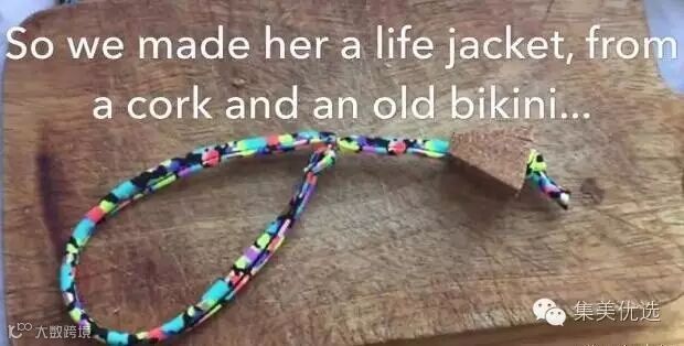 机智的Aidan为了安慰女友,从女朋友的旧比基尼上剪下一条布料,又找了一块小浮木,做了一件“游泳衣”。