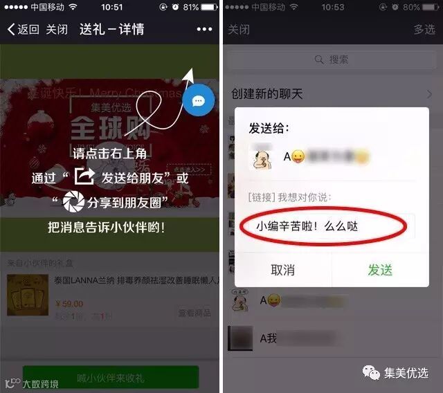 点击右上角,可将礼物链接发送给指定好友,也可分享到朋友圈。若分享到朋友圈,则第一位点击领取的好友得到礼物。