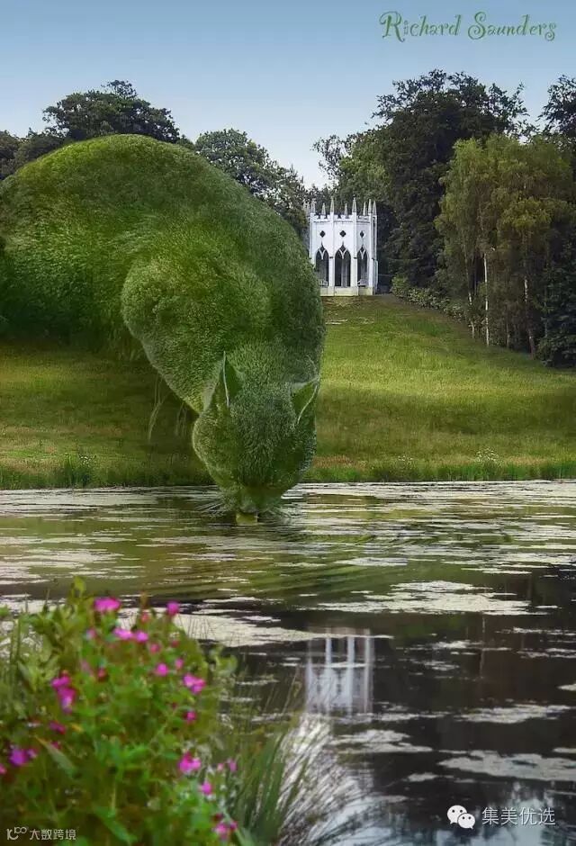 这极大地触动了这位已经年过七旬的老人,也让他萌生了艺术创作的灵感,何不就将这些灌木丛修剪成Tolly的模样呢?