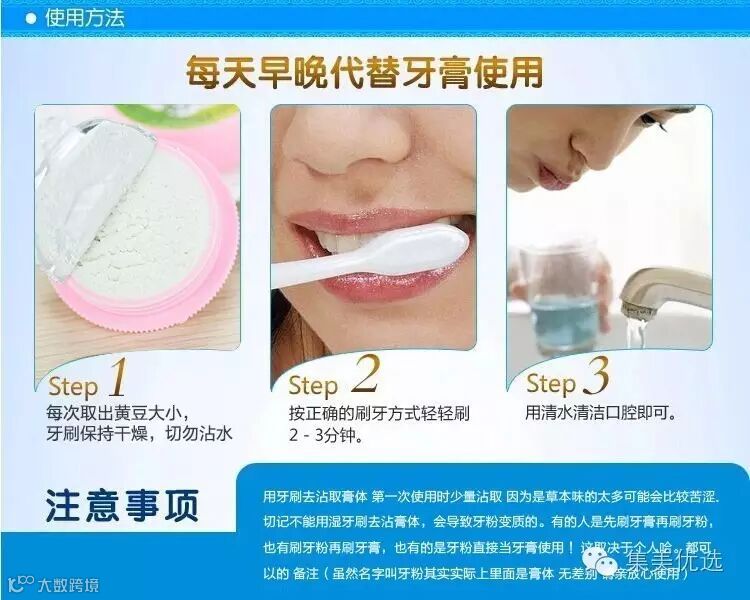 【用法】取黄豆粒大小的量(约占牙刷毛刷的1/10),每日早晚使用。