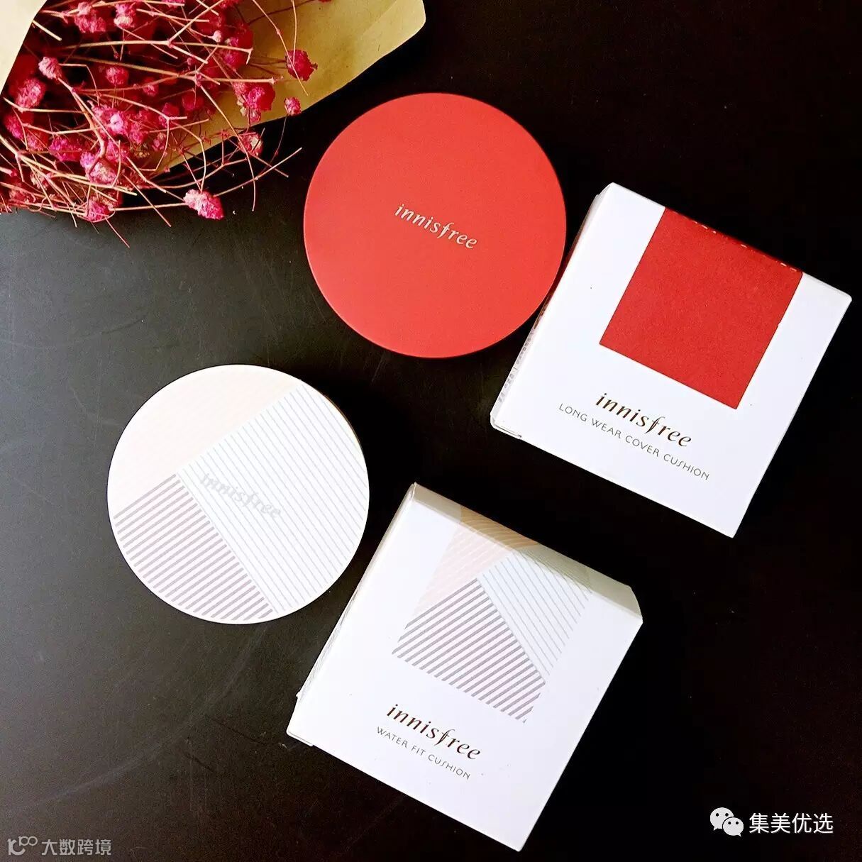 红色/粗斜纹(持久遮瑕),防晒指数SPF50+/PA+++,含有济州火山泥粉末,带来长时间持久遮瑕力,适合偏油的肌肤使用,带有哑光效果。米色/细斜纹(保湿),防晒指数SPF34/PA++,含有济州绿茶水的清爽保湿能力,适合混合皮肤四季使用,带来水活润光效果。
