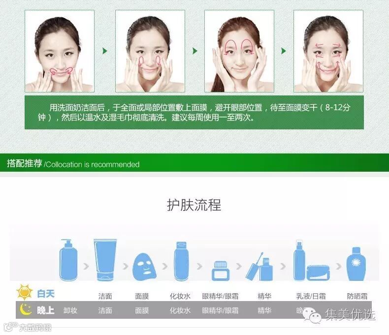 于洁面及爽肤水后,敷上面膜,避开眼部位置,等待约15分钟,然后以温水及湿毛巾彻底清洗。每周使用一至兩次。干性肌肤可每周使用一次做为特效护理。