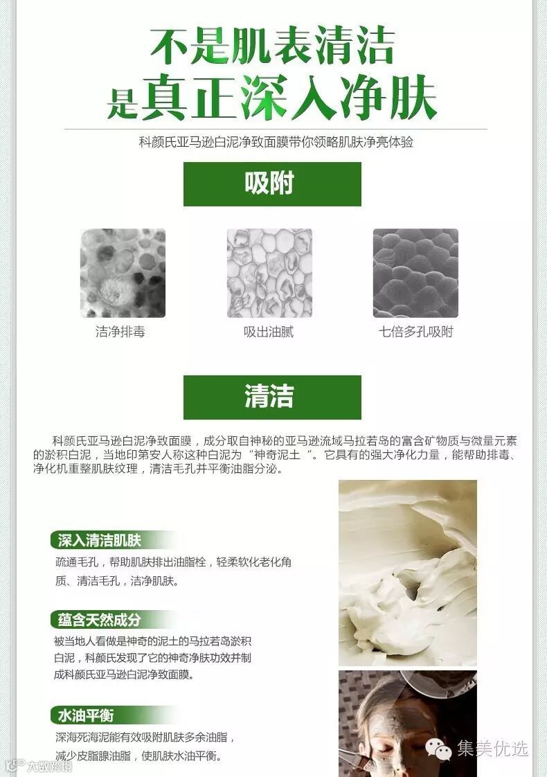 科颜氏亚马逊白泥净致面膜能有效帮助肌肤排毒、净化毛孔、深层清洁,改善多余油脂分泌的神奇面膜,使用后肌肤呈现出细腻、平滑及洁净。内含亚马逊白泥、翠叶芦荟萃取、皂土、燕麦粉等高效肌肤净致成分,适用于所有肤质。