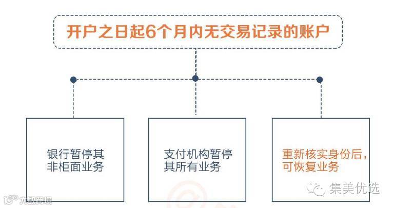 在央行出台的新规中,还规定对开户之日起6个月内无交易记录的账户,银行应当暂停非柜面业务,支付机构应当暂停所有业务,待单位和个人重新向银行和支付机构核实身份后,方可恢复业务。