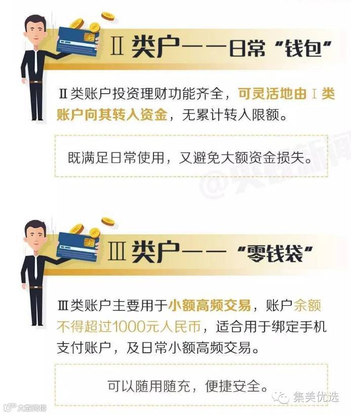 提示一:如果是使用I类账户绑定了支付宝、微信,用于日常消费,为了保障账户资金安全,可以将I类账户下调为II类或III类账户,只需存款人经过基本的身份确认就可以。