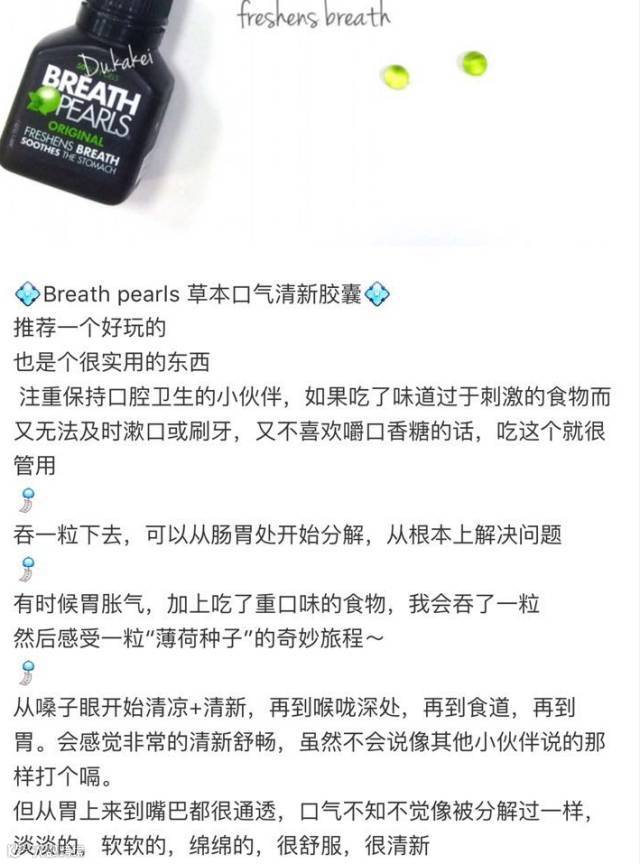 BREATH PEARLS并不是口香糖,而是一种专门针对口气与肠胃的软胶囊,不仅可以短时间内清新口气,更能从根本上解决口气问题。
