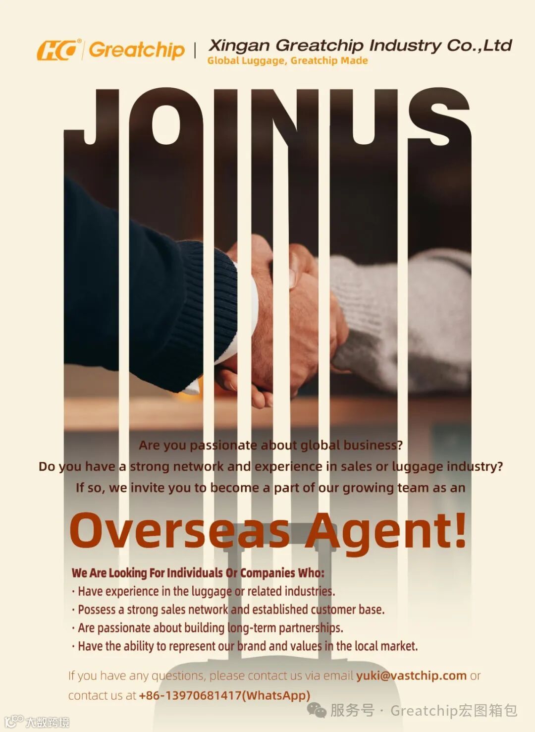 Greatchip, the trusted manufacturer behind premium-quality luggage, is now recruiting 【OVERSEAS AGENTS】to grow with us worldwide!