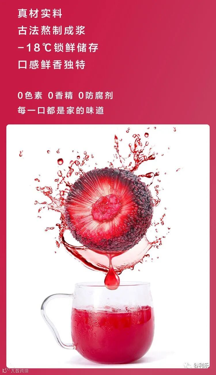 《舌尖上的中国》曾言,高端的食材往往只需要采用最朴素的烹饪方式。谷利乐杨梅汁完全承自于此,采用最古老、最朴素也是最简单的配方,不加香精,不加色素,不加防腐剂,健康天然,有着超高的营养价值。