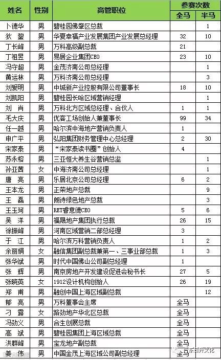 2019年中国地产高管马拉松榜出炉,你认识几个?(数据来源于乐居财经)