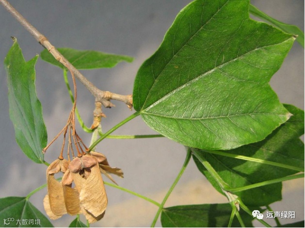 落叶乔木,高5-10米,稀达20米。树皮褐色或深褐色,粗糙。小枝细瘦;当年生枝紫色或紫绿色,近于无毛;多年生枝淡灰色或灰褐色,稀被蜡粉。冬芽小,褐色,长卵圆形,鳞片内侧被长柔毛。翅果黄褐色;小坚果特别凸起,直径6毫米;翅与小坚果共长2-2.5厘米,稀达3厘米,宽9-10毫米,中部最宽,基部狭窄,张开成锐角或近于直立。花期4月,果期8月。