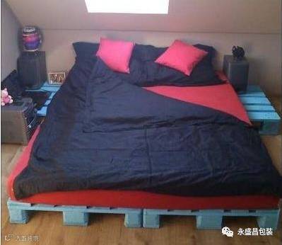 即便是在家里也可以用托盘做临时双人床哟,看看上面图片的效果,简单使用几个托盘搭建的DIY双人床,宽敞、结实、舒适,还设置了床头柜区用来摆放杂物,一起来跟着小编学习利用旧托盘DIY双人床的做法吧。