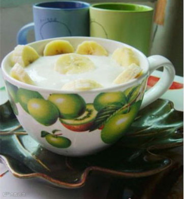也可以把香蕉榨成香蕉汁来吃,再拌上美味的酸奶
