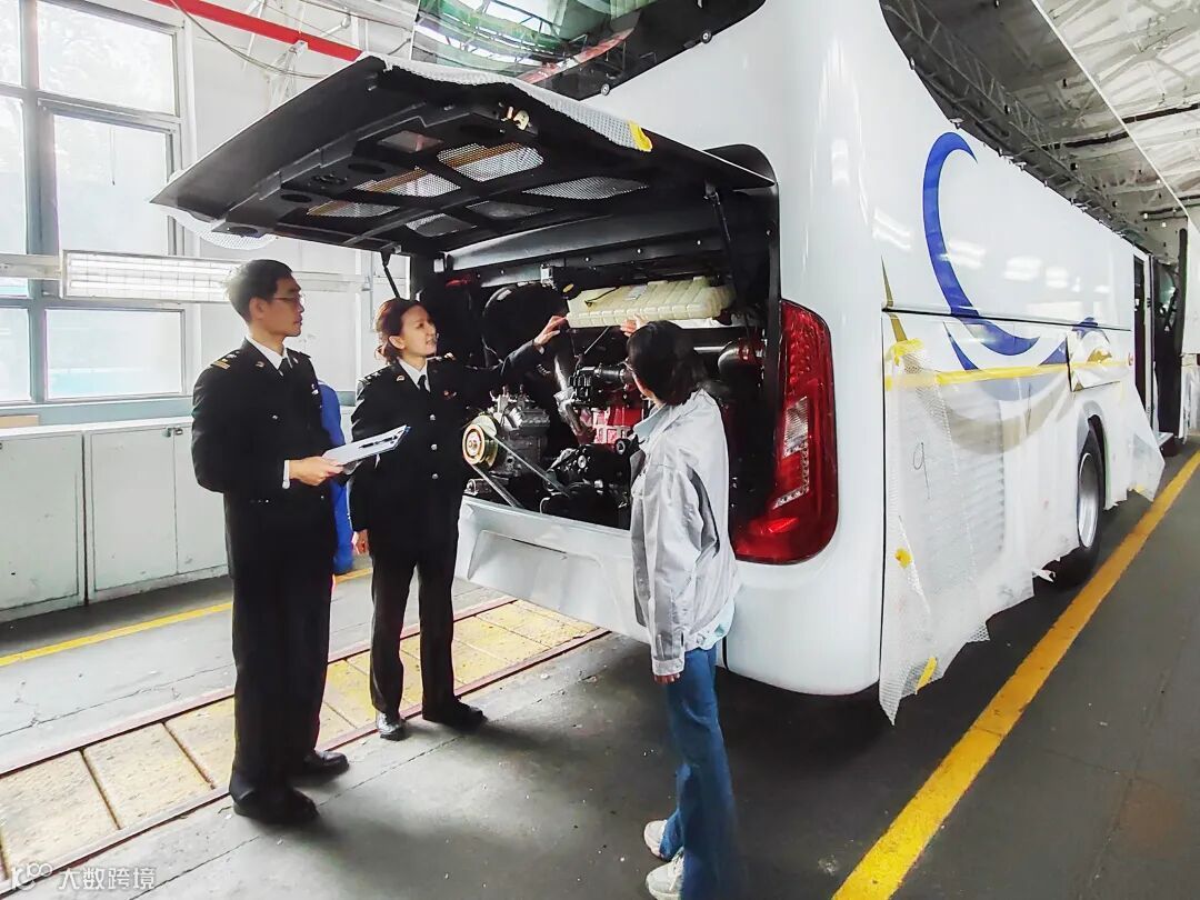 北京海关所属海淀海关关员赴企业开展现场监管并提供政策咨询,助力企业新能源客车出口“一带一路”共建国家。摄影:张志强