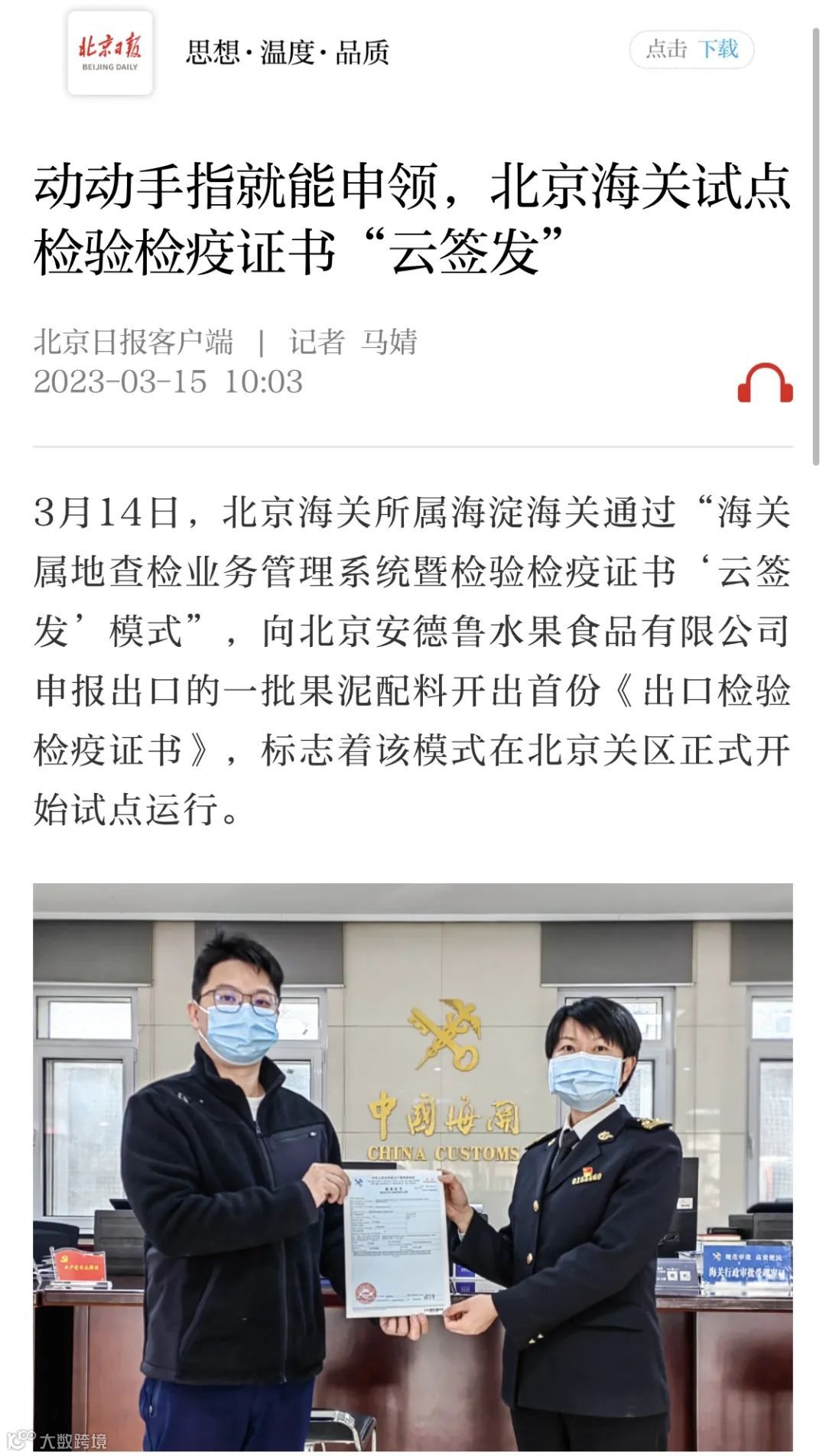 2023年,海关总署开展加快推进属地查检业务管理系统应用和出口检验检疫证书“云签发”模式复制推广工作。为贯彻落实“智慧海关”建设工作部署,自2023年3月起,北京海关在所属丰台海关、海淀海关和亦庄海关试点推广通过海关属地查检业务管理系统办理出口货物申报前监管业务。