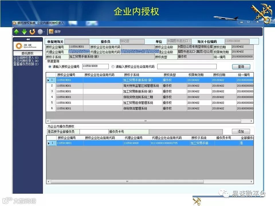 2、企业使用被授权的虚拟法人卡登录QP系统,在委托授权系统中操作企业间和企业内授权。
