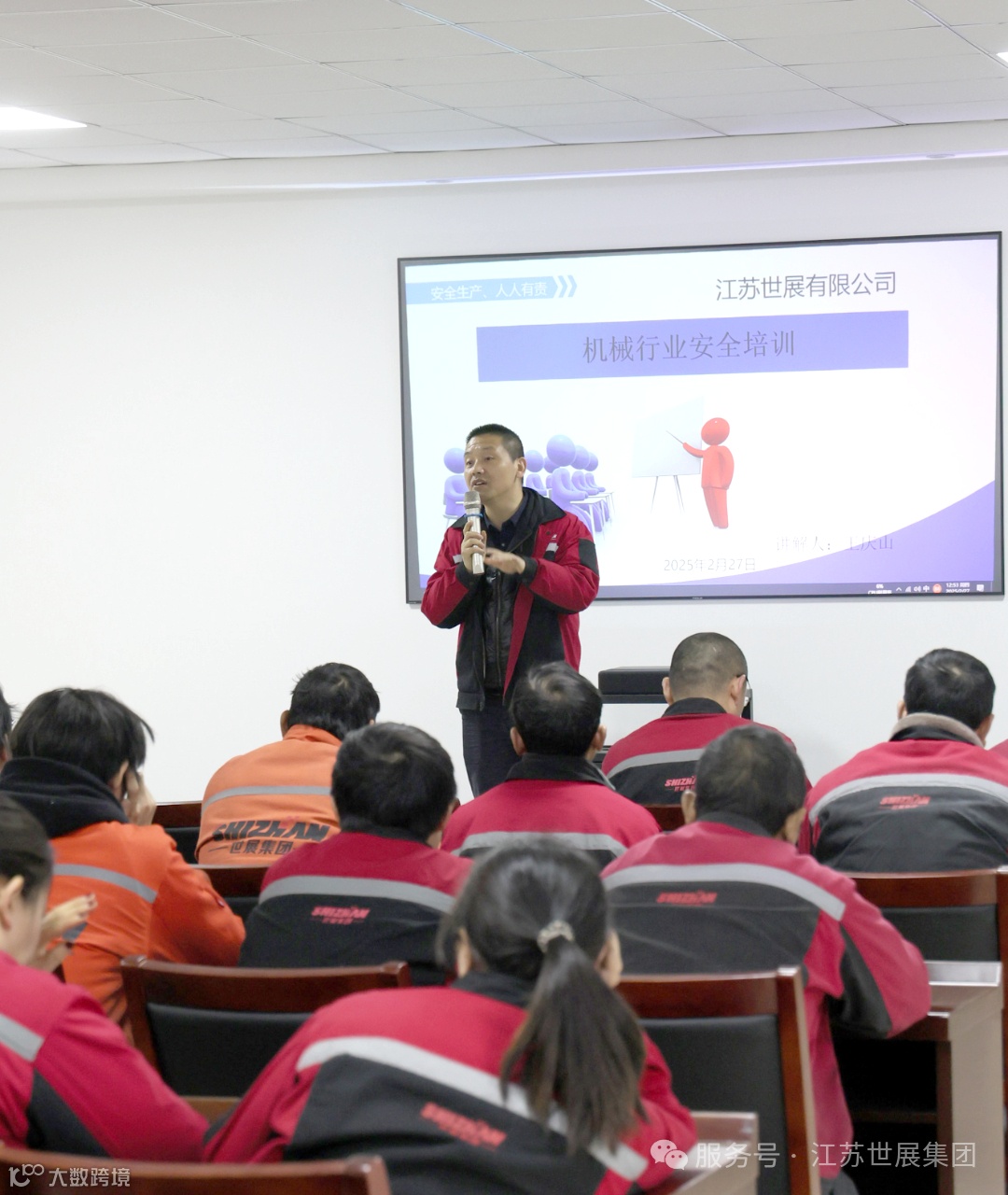 2月27日,江苏世展集团第一届第五次职工代表大会召开。滕春峰(滕总)、王仕贵(钢铁车间主任)、邹意凯(铝合金内销车间主任)、陆军(铝合金外贸车间主任)、王庆山(安全员)等出席会议并讲话。滕总强调,要深入学习贯彻安全生产工作的重要论述精神,严格落实安全生产工作相关部署要求,牢固树立安全发展理念,时刻绷紧安全风险防范这根弦。