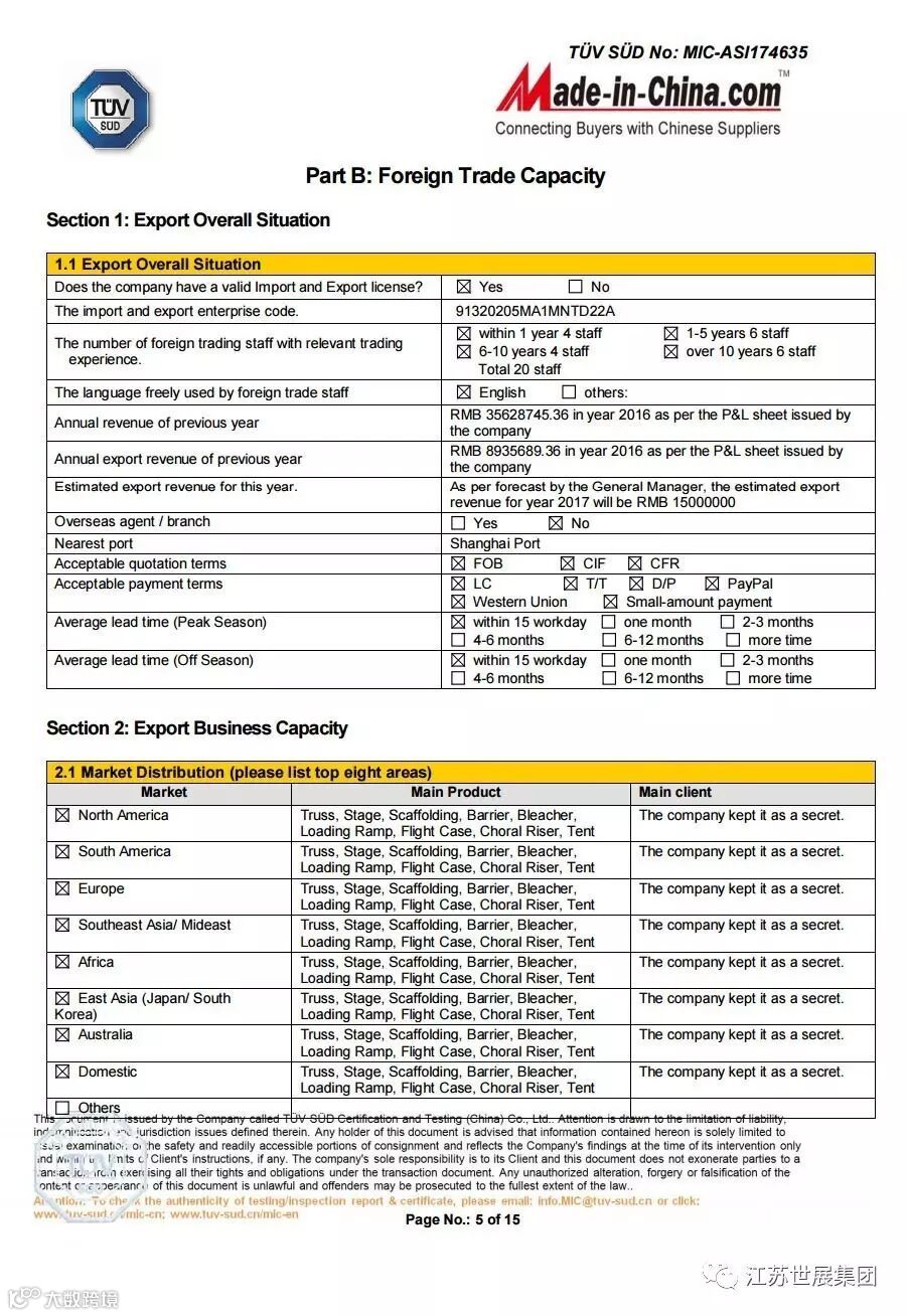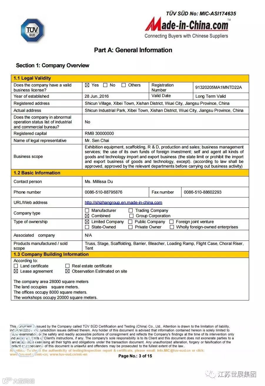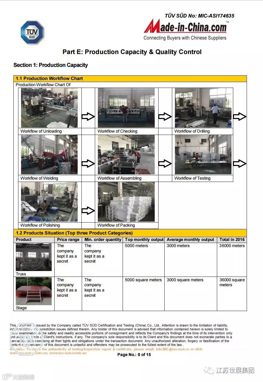 江苏世展集团是目前江浙沪唯一一家集团公司---专业展览器材、建筑器材、一级供应商,政府,世博会,亚博会用品供应单位,传媒广电一级资质供应商,并拥有自主铝型材挤压生产车间和专业物流配发。产品配送全国各地,长期出口日本,加拿大,德国及欧盟国家并获得了多项荣誉证书,曾多次被评为重合同守信用企业。集团拥有32000平米自主厂房公司经过多年的发展积累,已打造出一条:原材料生产——配件生产——成品生产——表面处理的完整生产链,实现了产品质量的全面控制。