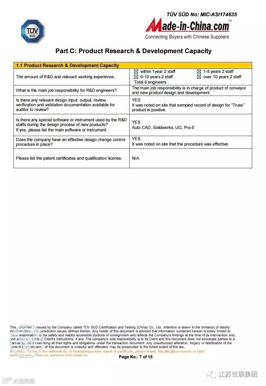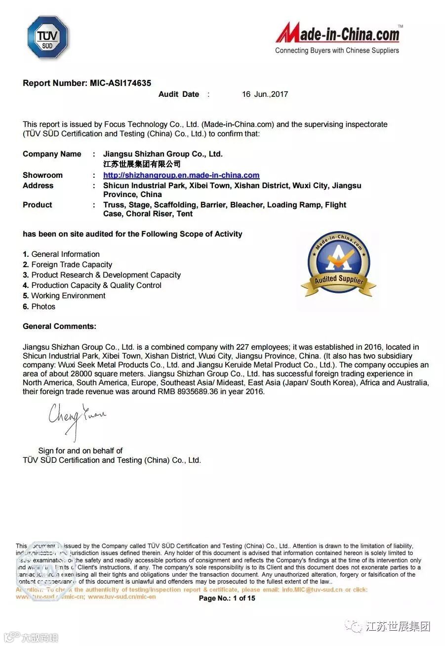 热烈祝贺江苏世展集团有限公司通过“德国TUV莱茵认证”