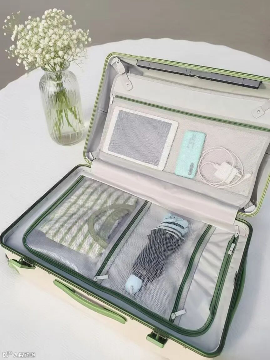 双网袋+ 独立隔层 + 干湿分区,证件 / 内衣 / 化妆品各归其位,开箱再也不用「海底捞」