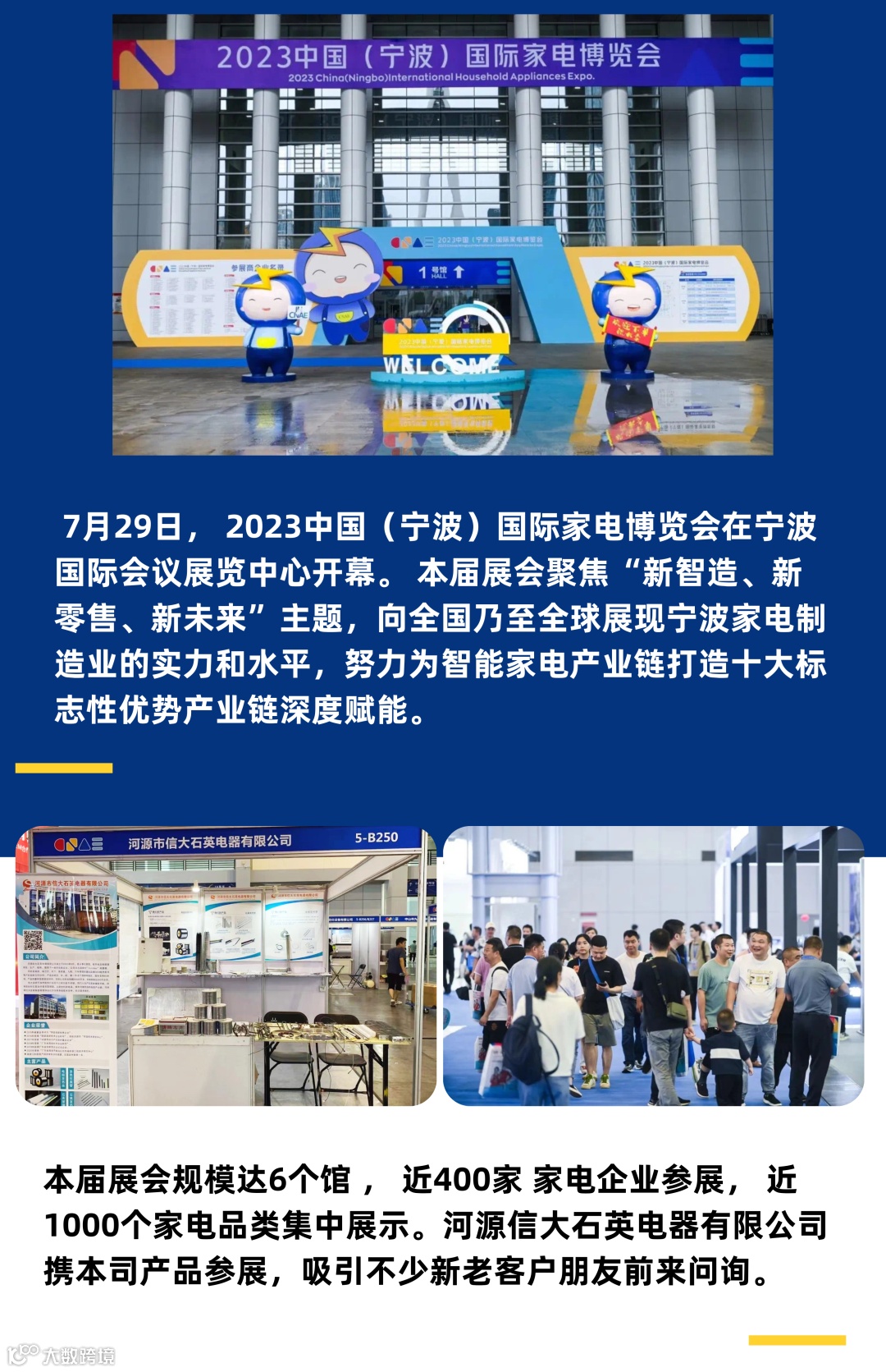导读:河源信大石英电器有限公司携多元产品亮相2023中国(宁波)国际家电博览会,吸引不少新老客户朋友前来问询。