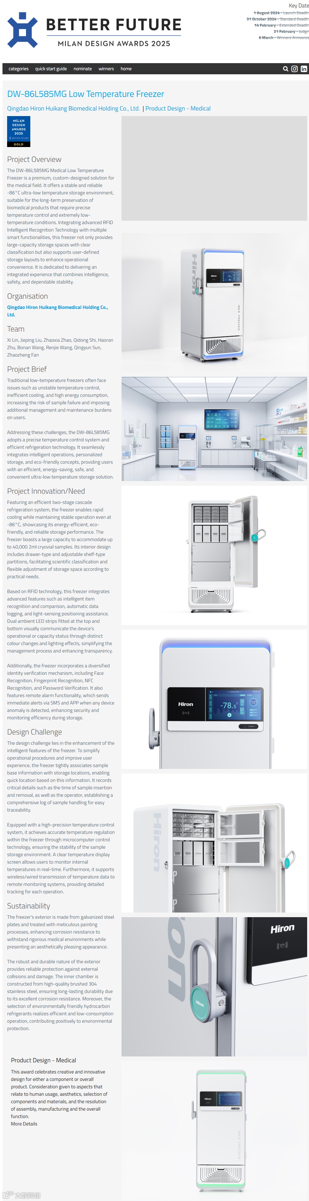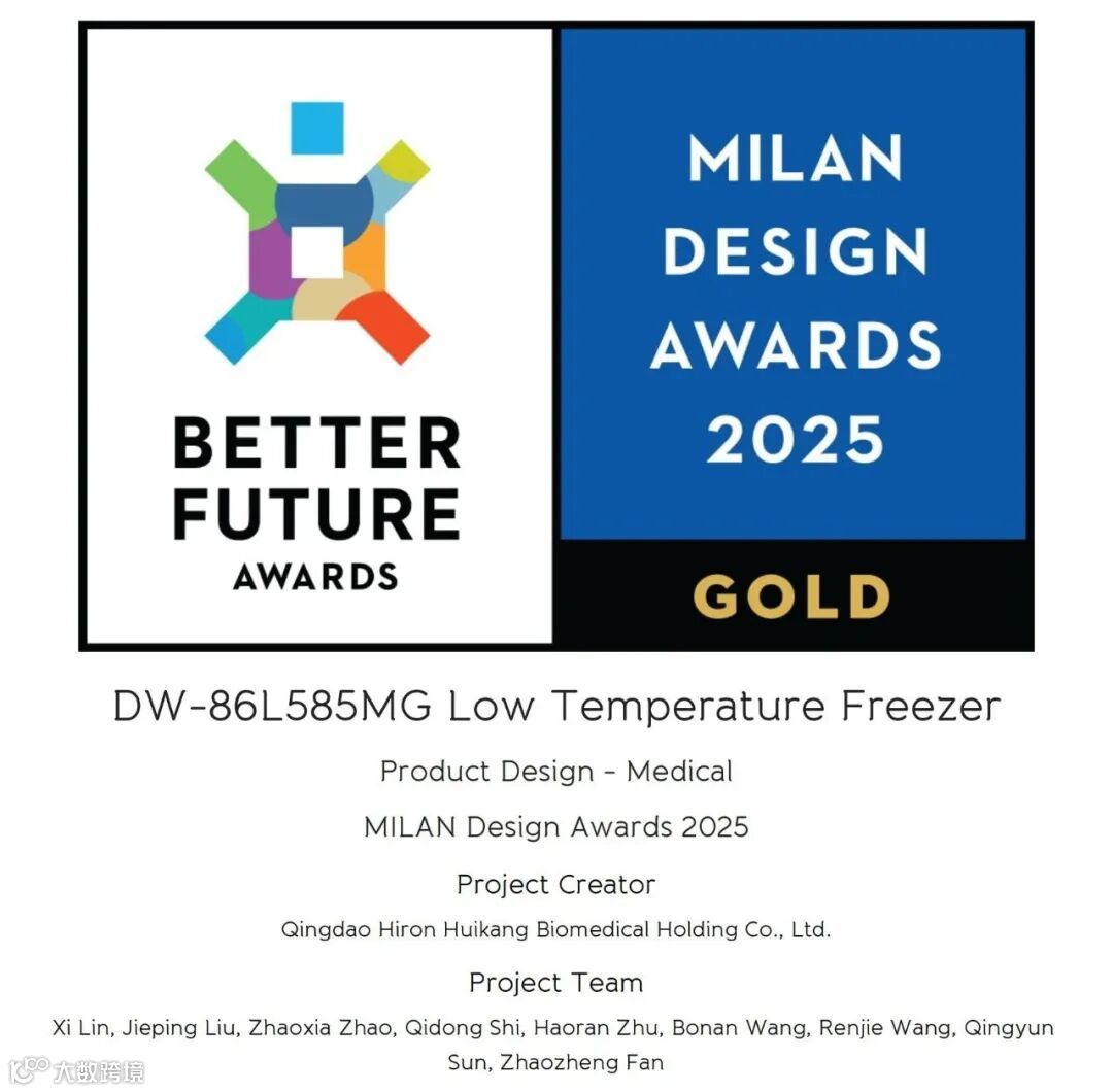 近日,2025年米兰设计奖(MILAN DESIGN AWARDS)公布了获奖名单,青岛海容惠康生物医疗控股有限公司自主研发的"-86℃超低温保存箱",从全球67个国家、超3000件参赛作品中脱颖而出,荣膺"工业设计金奖"!