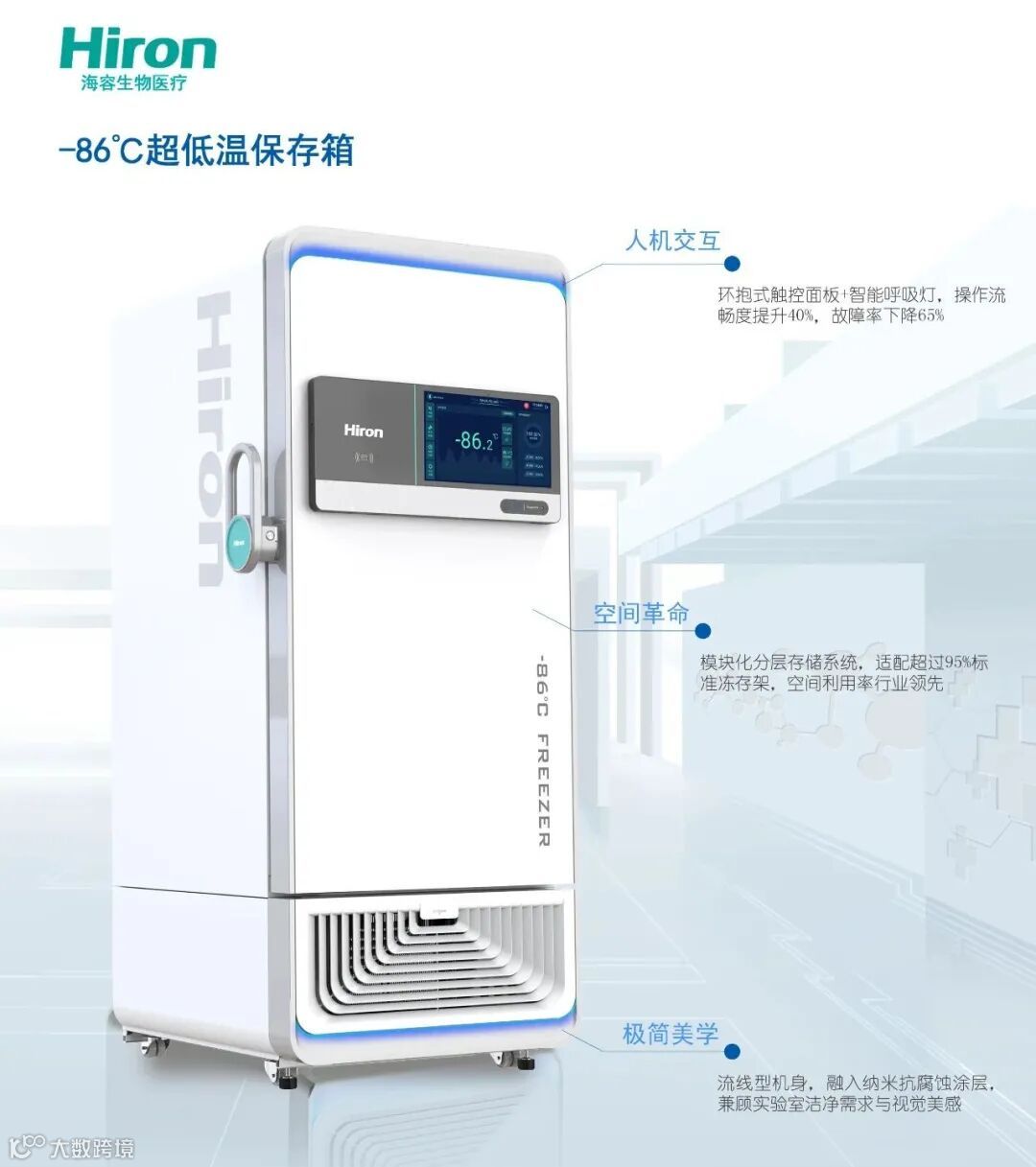 本次获奖的超低温系列产品,以"生命方舟"为设计理念,颠覆传统医用冷柜的工业设计定式,采用生物安全舱式流线造型,既体现生物科技的未来感,又符合医疗机构的空间美学需求。