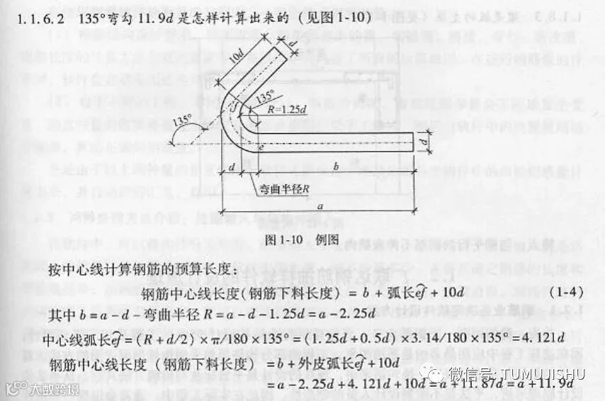 钢筋直径为d,弯曲直径D取2.5d。该角度常用于抗震箍筋末端弯钩,其长度计算需结合平直段与弧长部分综合确定。