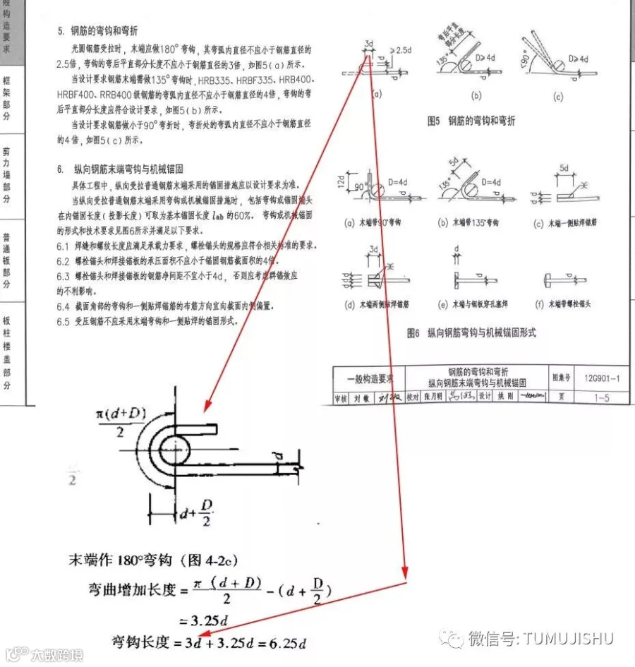 本文介绍180度、135度及90度钢筋弯钩的长度计算方式,依据图集16G101-1相关规范进行说明,确保施工中钢筋下料准确。