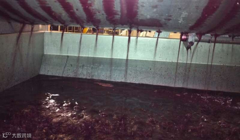 15. 下面是用不锈钢罐来发酵葡萄酒的情形。发酵过程中会产生大量二氧化碳,所以容器可以不加盖子。也有些时候,发酵会在封闭的容器中进行,容器上附带有通风口,可以允许二氧化碳散逸出去。