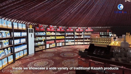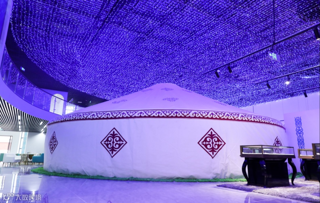 记者近日来到位于成都市青白江区的哈萨克斯坦馆,室内矗立的星空毡房引人注目。在这个面积达120平方米的毡房中,货架延伸至毡房穹顶,驼奶粉与巧克力、糖果等众多从哈萨克斯坦进口的食品错落陈列。