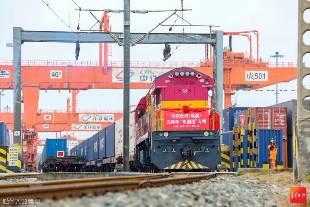上午10时,两辆满载医疗设备、车载显示器、邮包等货物的列车——中欧班列(成渝)五周年“川渝造”班列,同时从成都国际铁路港、重庆团结村中心站缓缓驶出,分别发往荷兰蒂尔堡和德国杜伊斯堡,以成渝联合之名奔赴新程,标志着中欧班列(成渝)迈入更高层次的发展阶段。