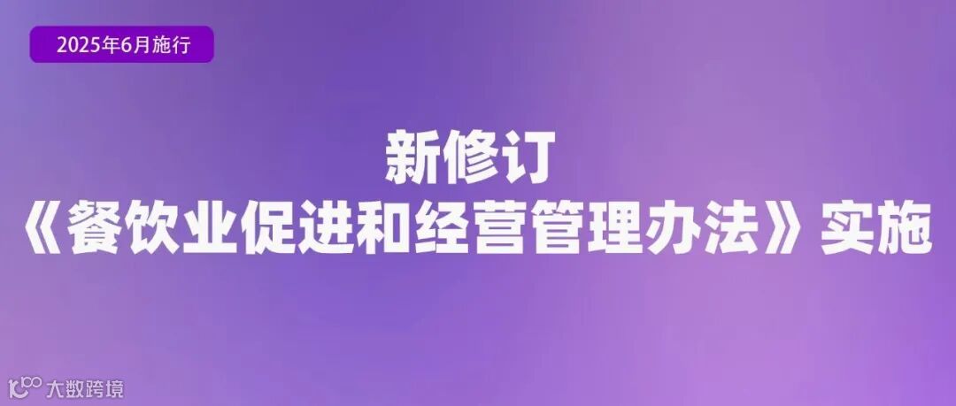 商务部、国家发展改革委联合修订发布的《餐饮业促进和经营管理办法》于2025年6月15日起实施,原《餐饮业经营管理办法(试行)》同时废止。《办法》修订突出促进导向,增加餐饮业对外交流合作、数字化发展、标准制修订、地方特色餐饮培育等方面的鼓励性条款,引导餐饮业高质量发展。严格遵照有关法律法规要求,从内部管理、提醒提示、供餐环节、消费场景等角度明确餐饮服务经营者反食品浪费要求和鼓励性措施,优化调整经营管理有关要求。同时,完善相关主管部门职责表述和执法衔接条款,增加促进行业发展、制止餐饮浪费和安全生产等有关内容。