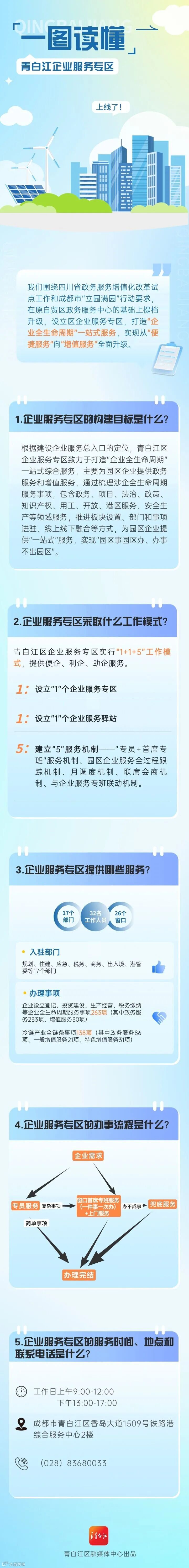 除了在专区有限的物理空间里延展政务服务的广度和深度,青白江还依托四川政务服务网青白江站点,探索打造青白江区政务服务增值化专区,归集项目建设、政策服务等9大类29个涉企服务平台入口,提供涉企服务平台“一键可查、一屏可览、业务可办”。