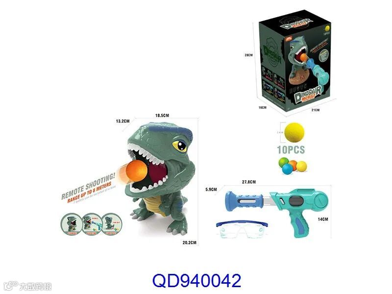 Gun attaches with dinosaur shooting target, goggles and soft bullet