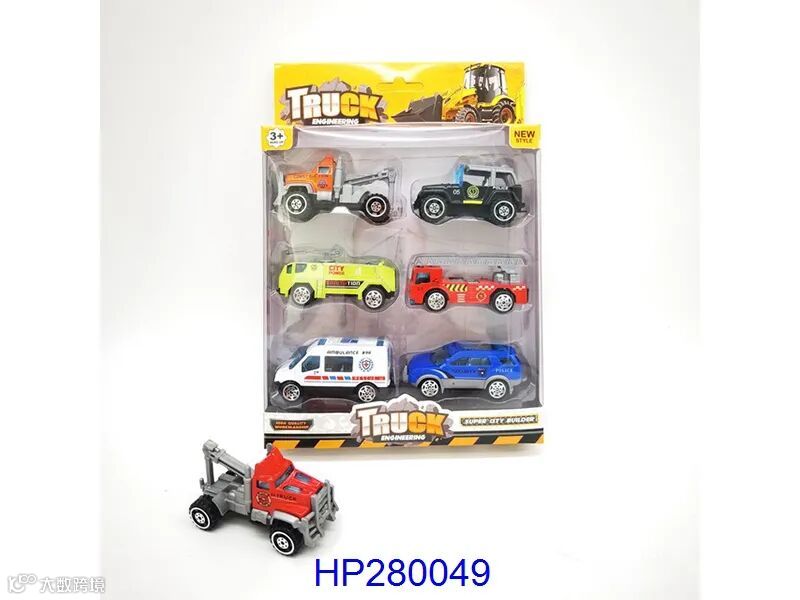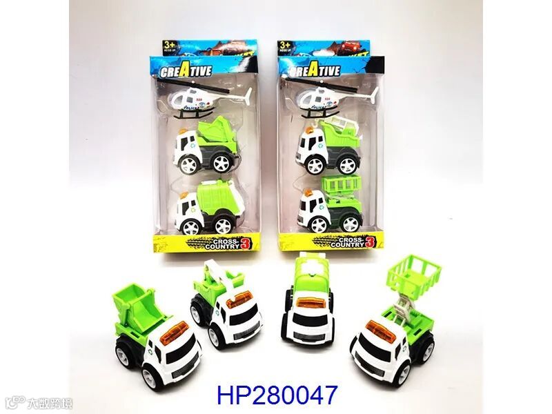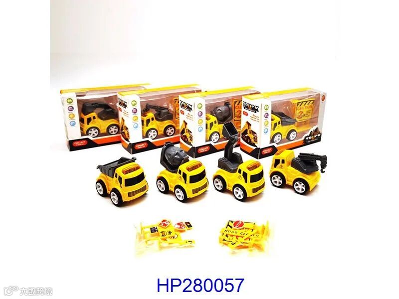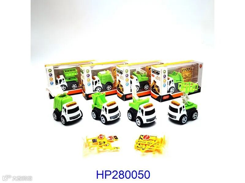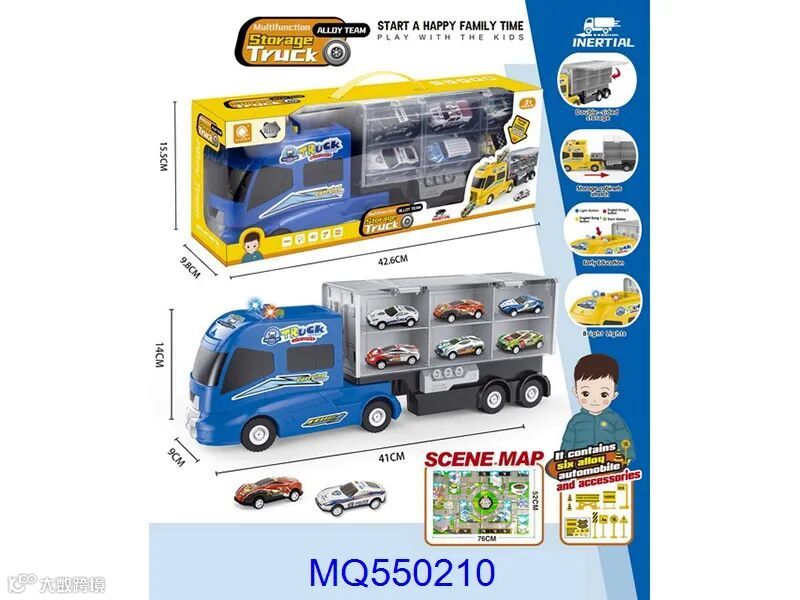 A truck with electric and inertia (with 6 tin cars, a map and a set of road signs)