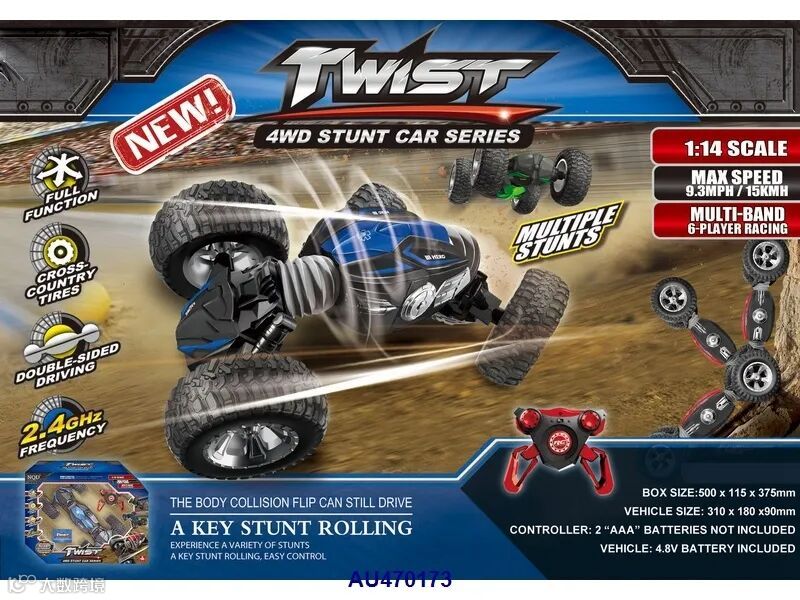4-funtion 1:24 R/C 4WD stunt twist car (USB charger & 4.8V battery for car incl., 2xAAA for controler excl.)