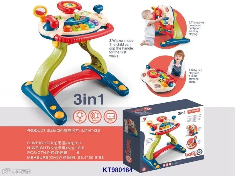 3 in 1 Multi-function steering wheel baby Walker w/light,music (3*AA excl.,12M+)