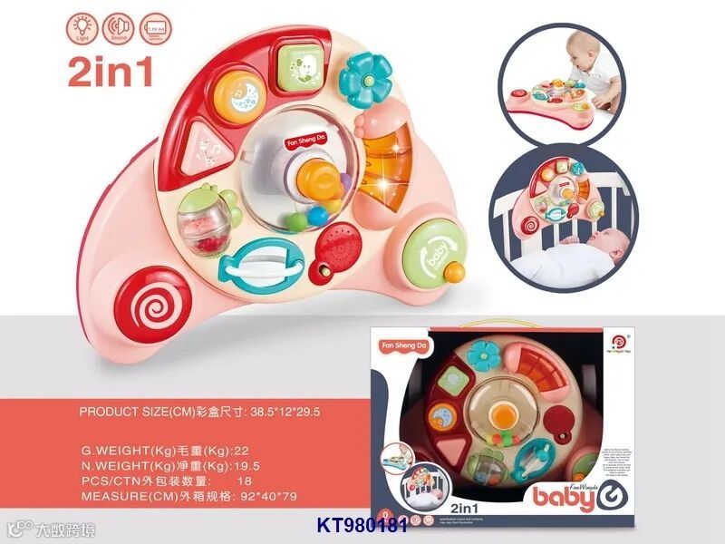 灯光音乐三合一多功能方向盘婴儿学步车(用3xAA无包电,12M+)