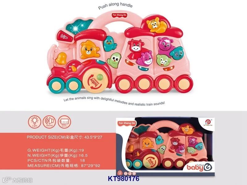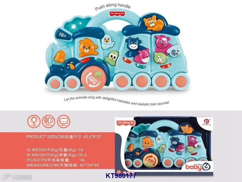 Hand pushed baby animal train w/light,music