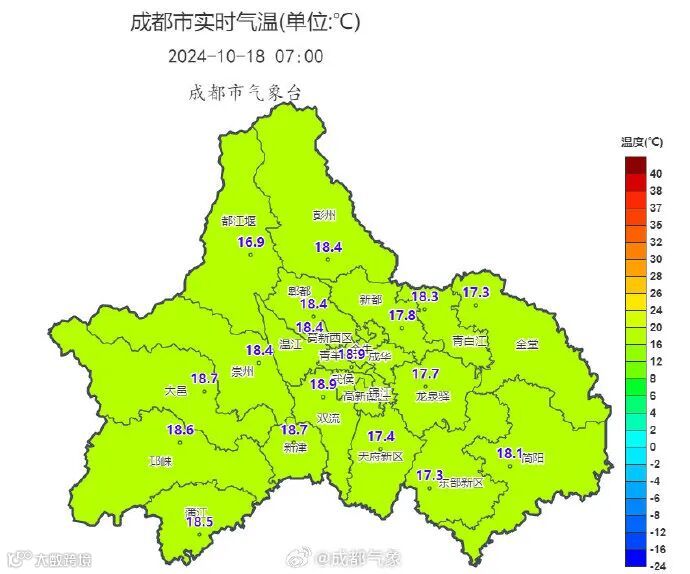 18日晚上到19日白天阴天有中雨,西部局部地方大雨,中东部有偏北风3~5级,气温17~21℃;中心城区,阴天有中雨,偏北风3~5级,气温17~21℃。