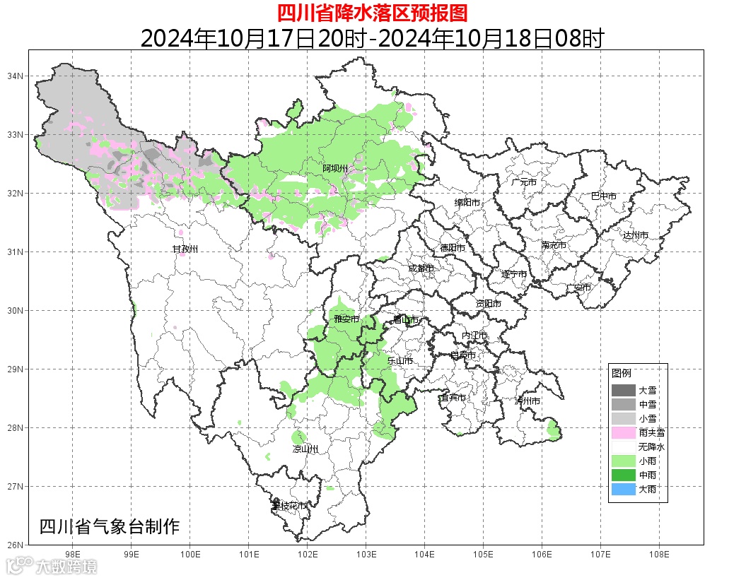 19日至20日,四川省有一次较明显的降水天气过程,盆地普遍有中到大雨,局部暴雨,川西高原和攀西地区有小雨(雪),局地中雨(雪),需防范局地强降水和降雪天气带来的气象次生灾害。