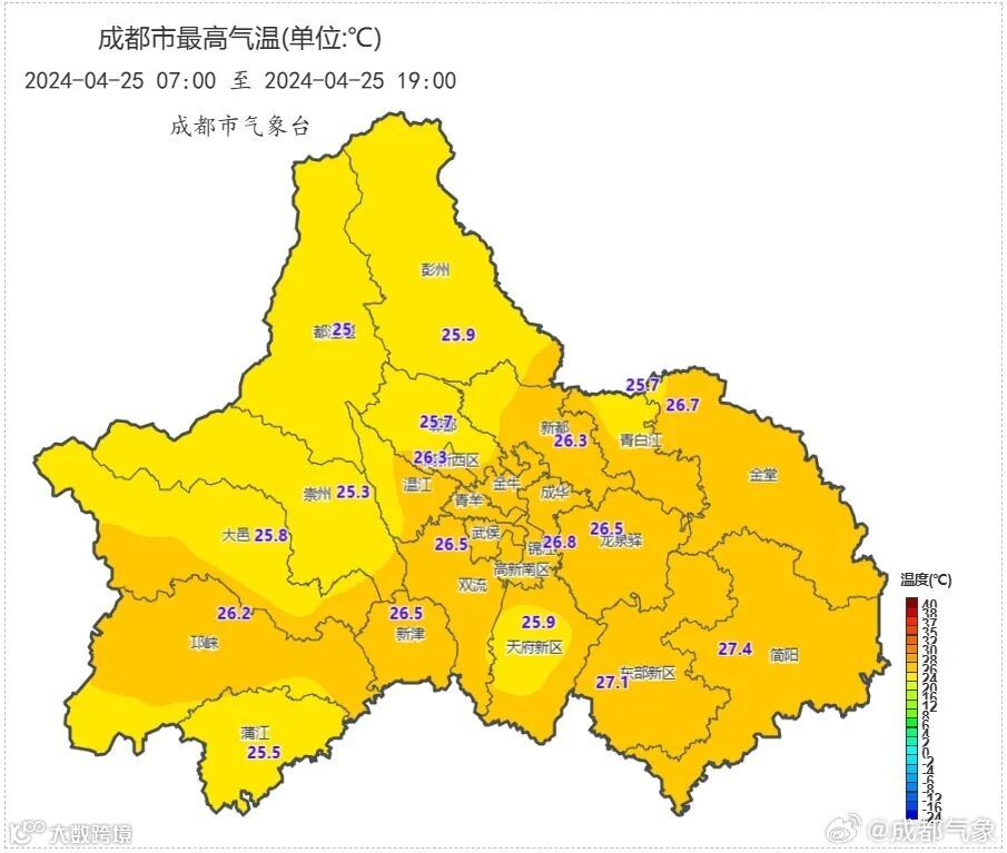 24小时内,盆地最低气温:16~18℃;最高气温:27~30℃。