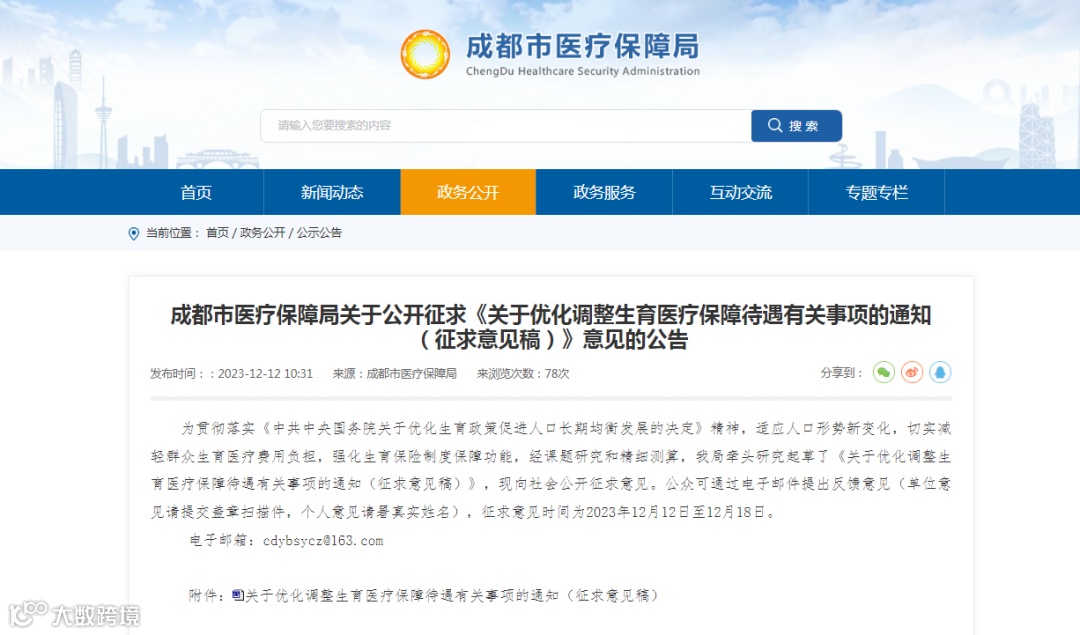 为贯彻落实《中共中央国务院关于优化生育政策促进人口长期均衡发展的决定》精神,适应人口形势新变化,切实减轻群众生育医疗费用负担,强化生育保险制度保障功能,经课题研究和精细测算,我局牵头研究起草了《关于优化调整生育医疗保障待遇有关事项的通知(征求意见稿)》,现向社会公开征求意见。公众可通过电子邮件提出反馈意见(单位意见请提交盖章扫描件,个人意见请署真实姓名),征求意见时间为2023年12月12日至12月18日。